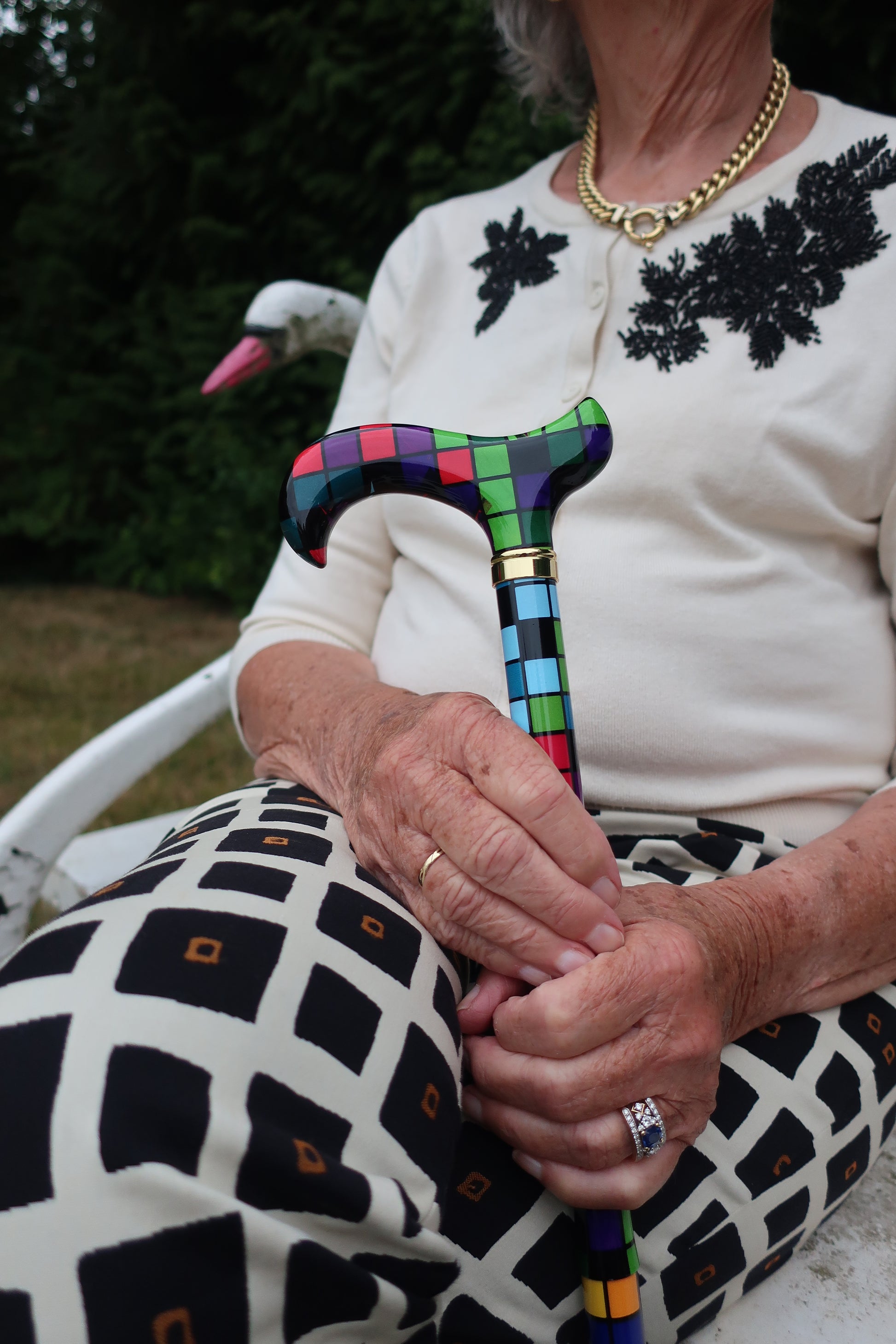 Met deze Kubus wandelstok voegt u lef en flair toe aan uw dag. De print is stoer en speels tegelijk en laat zien dat u durft te kiezen voor een statement, ook als het om een wandelstok gaat. Perfect voor wie graag een vleugje power toevoegt aan elke stap.